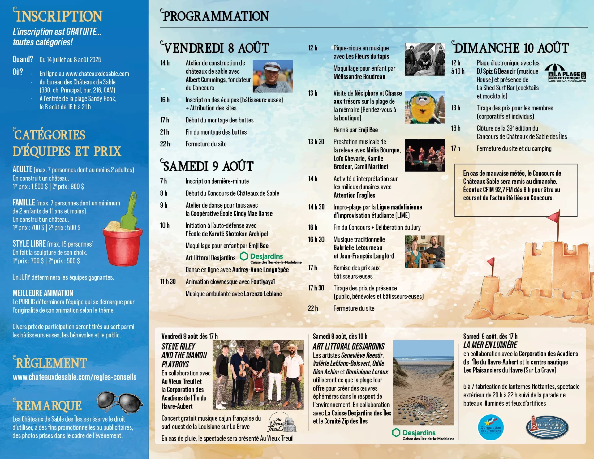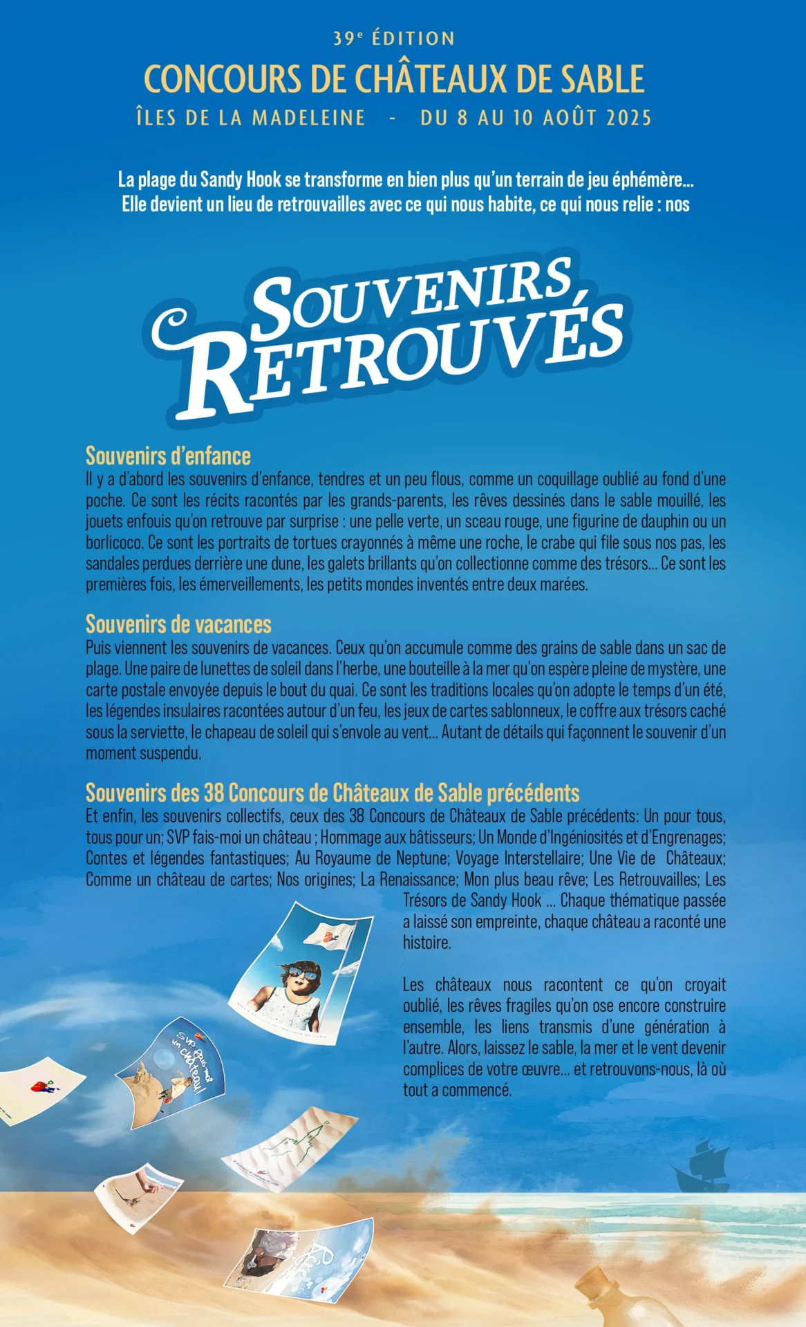 The Corporation des Châteaux de Sable des Îles invites you to become a member for our 39th edition, that will take place from August 8th to August 10th 2024, on Sandy Hook beach.